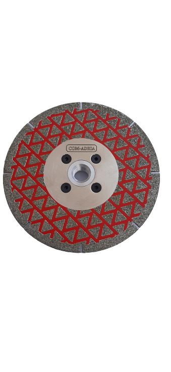 Galvanizirani rezno brusni disk za sve vrste mramora i prirodnog kamena. Dijamant u obliku trokuta postavljen sa obje strane diska za brušenje.